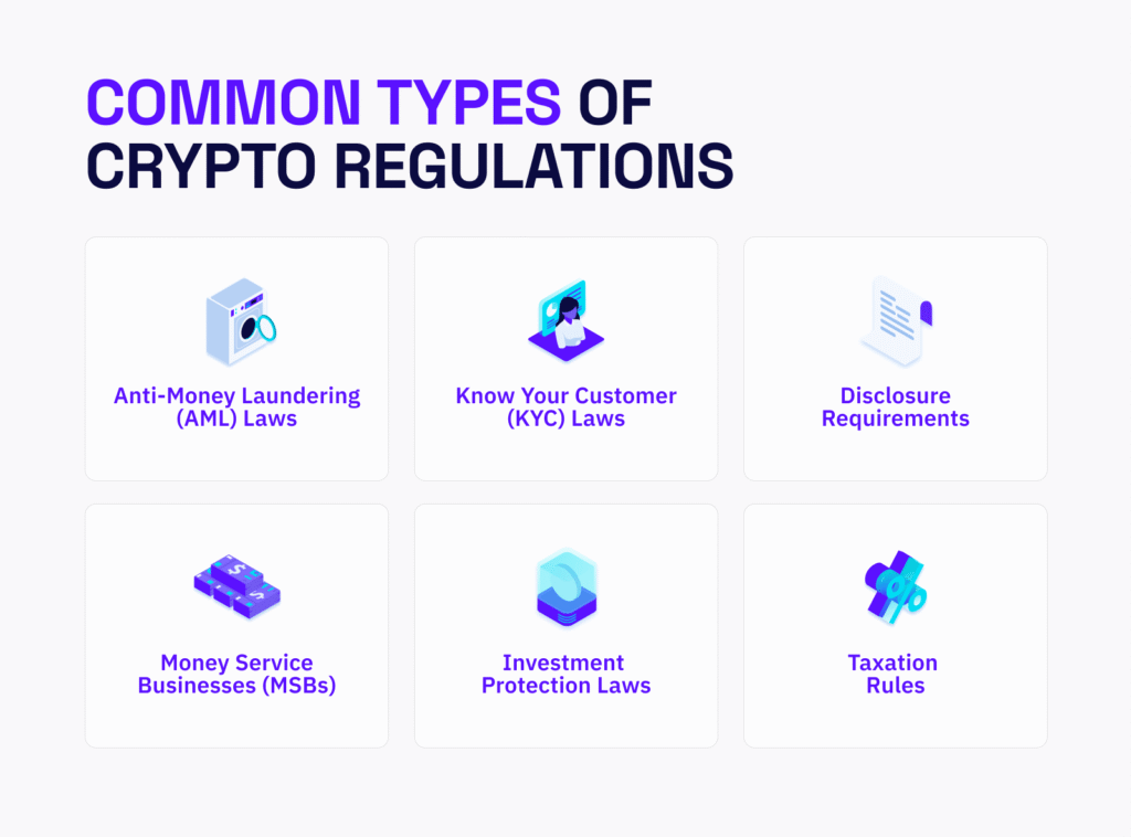 Most crypto regulations focus on a few major areas:
